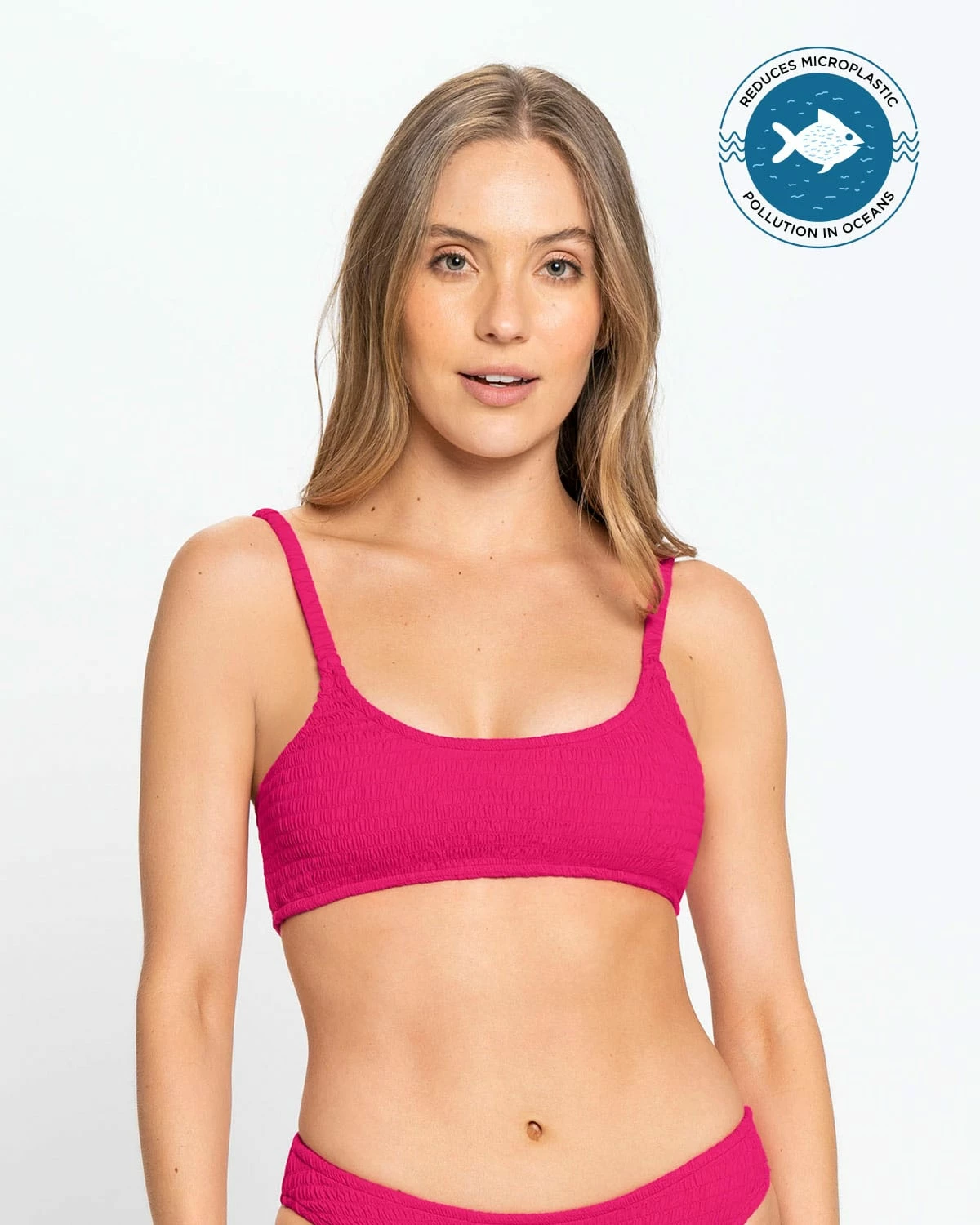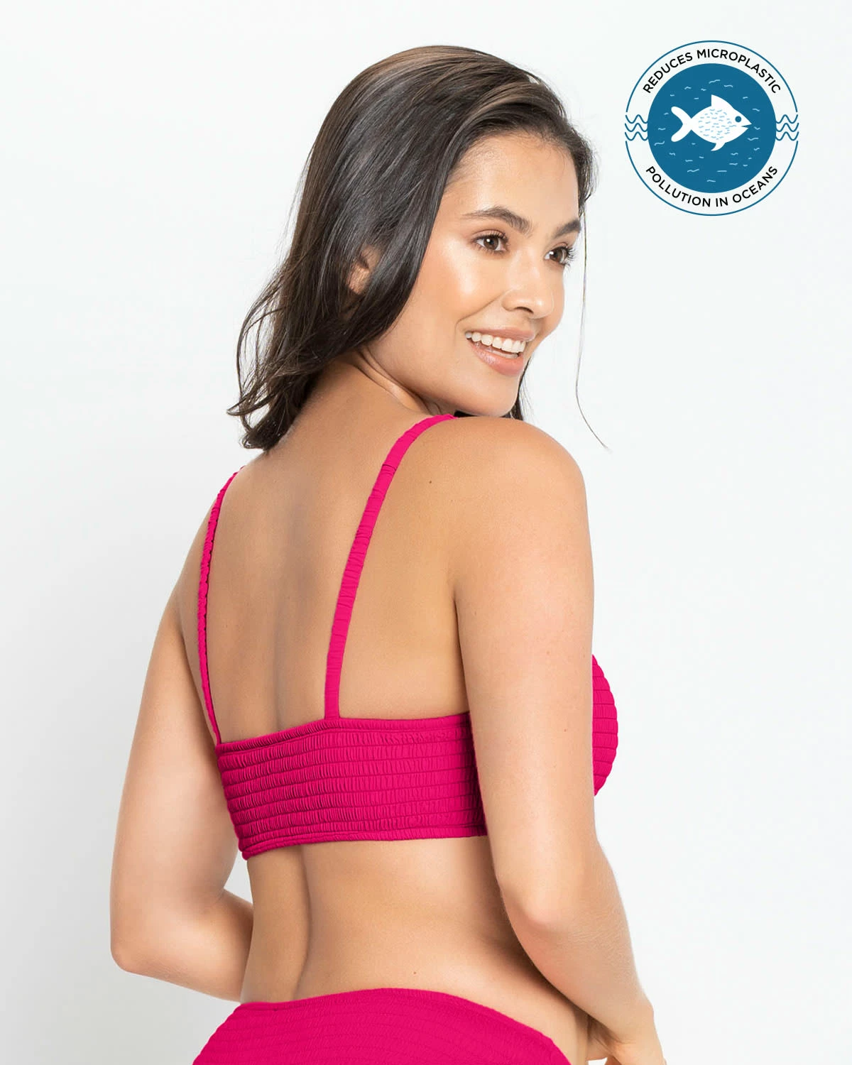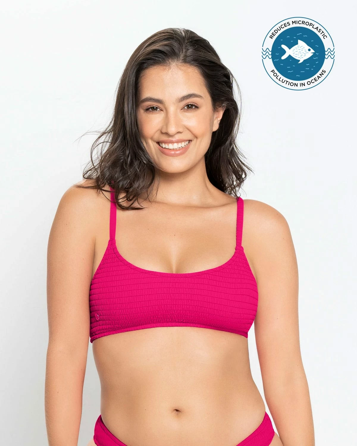 Vous allez adorer le design de ce haut de bikini car il est différent, frais et très tendance. Son tissu en nid d’abeille froncé sur tout le vêtement, jusque dans les épaulettes, lui donne une allure très sophistiquée. C’est avant tout un haut éco-responsable puisqu’il a été fabriqué avec du nylon recyclé. Mode et durabilité réunies dans un seul vêtement !