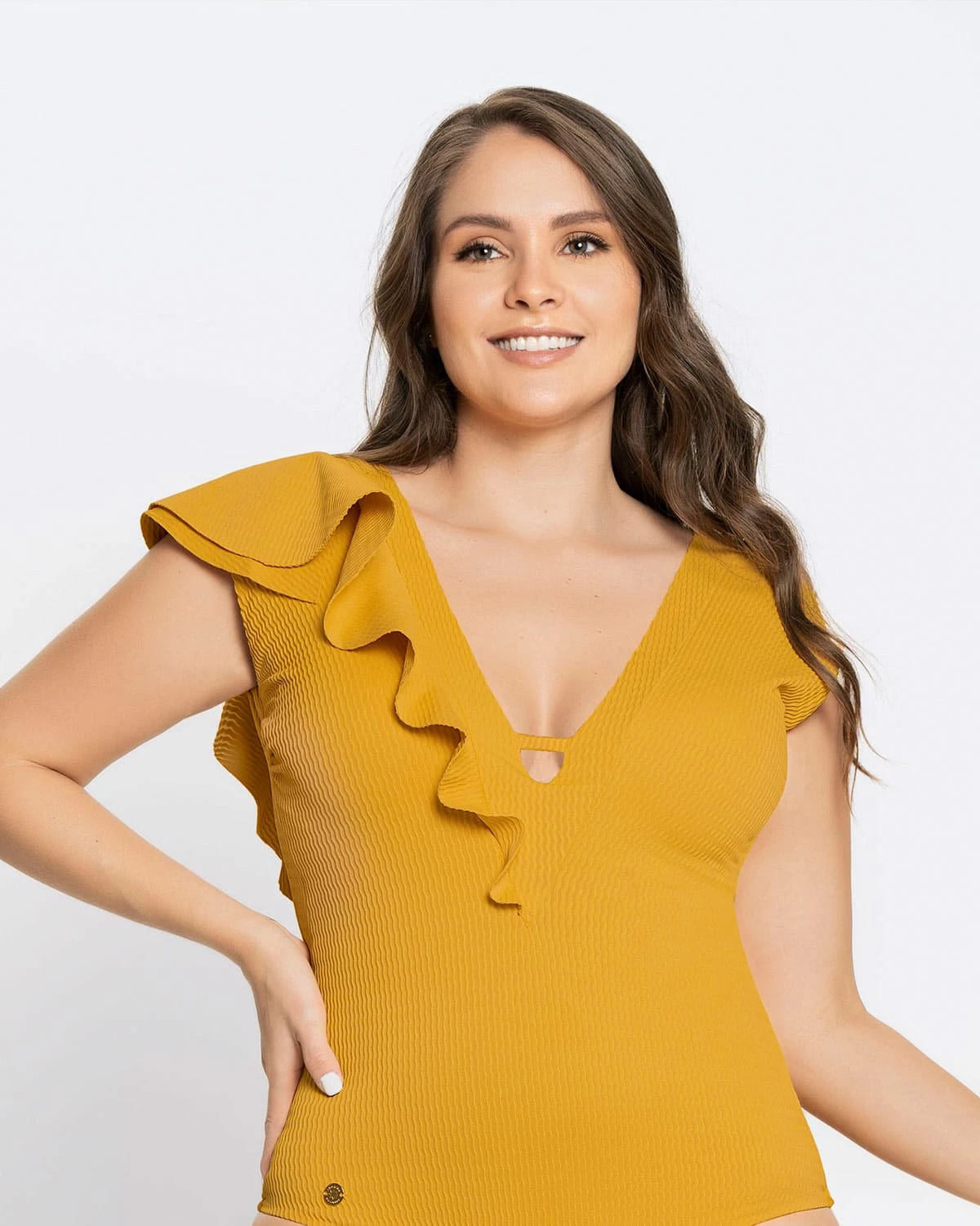 Si vous aimez les détails différents et que vous avez l’air plus mince, vous allez adorer ce maillot de bain une pièce doux à la texture côtelée. Il a des bonnets en mousse fixes qui donnent une forme plus arrondie et une taille moyenne au buste et avec des arcs pour un soutien supplémentaire. Votre tenue de plage mérite une silhouette comme celle-ci : différente et pleine de style. Ses manches à épaules dénudées offrent une couverture supplémentaire sur les côtés des emmanchures et s’enroulent dans cette zone. Le boléro latéral qui maintient sa forme avec l’eau ajoute une touche très sophistiquée à votre look et son dos a un décolleté plongeant très sexy qui vous fera vous sentir spectaculaire.