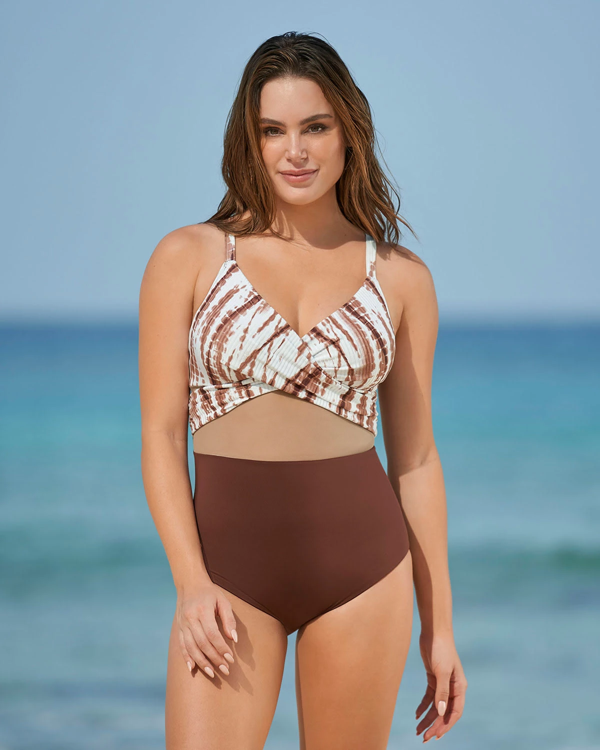 Un maillot de bain une pièce avec une compression amincissante pour accentuer et définir votre silhouette : sentez-vous en sécurité et confiante à la plage ! Ce maillot de bain présente un design contrasté unique sur le buste et des bandes croisées pour un look élégant. Il est doté de bonnets fixes en mousse et de bretelles réglables. Les détails en tissu transparent contrasté sur le ventre vous donneront un look sophistiqué !